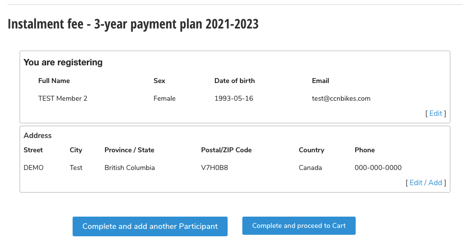 For the NEW VOTING member who chooses the 3-year payment plan ONLY - The system will prompt you to subscribe to the payment plan for both the initiation fee AND the installment fee. Simply select 'complete and proceed to cart' each time: