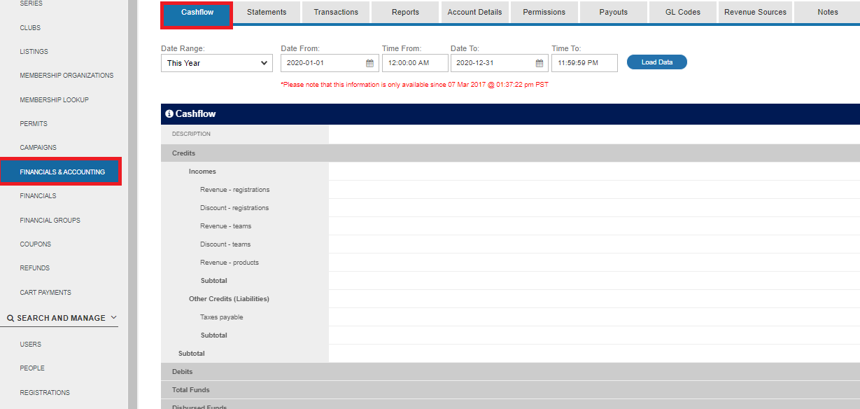 The financial and accounting tab will contain detailed financial information for funds we have collected on your behalf.