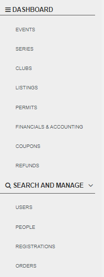 The ‘User ’ tab will allow you to search for user accounts - it is especially useful for locating individuals registered by an admin, coach, or as part of a family account.