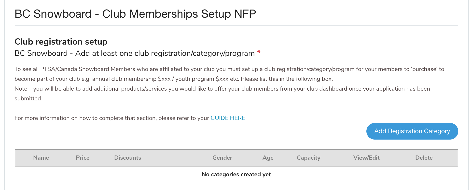 In that section, you'll be able to start setting up the basics of your club registration process by creating your membership categories and prices.