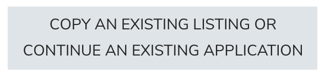 Once you found the listing you need, you can either continue an existing incomplete application using the icon, or copy the listing information and start a new application using the