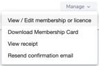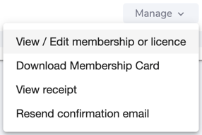 2. Click Manage, then View / Edit membership or licence