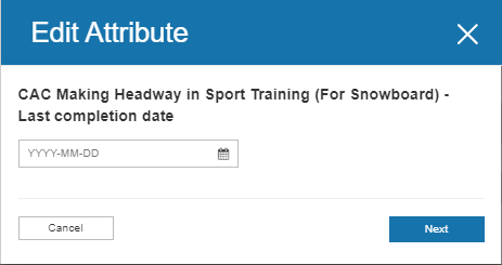 - Under Attribute & Records click edit for the CAC Making Headway in Sport Training (For Snowboard) - Last completion date attribute