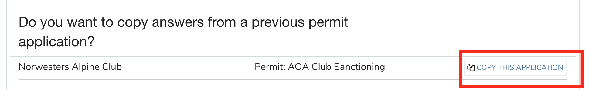 To do so, simply select "copy this application" at the "do you want to copy answers from a previous permit application" step: