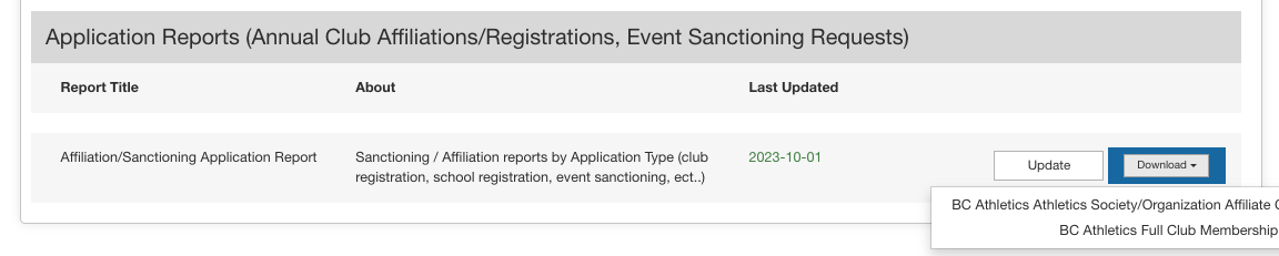 - After navigating to the REPORTS tab, make sure to update the 'Application Report' before downloading it. Please note that if you are managing multiple types of applications, you will have a separate report available for each application type.
