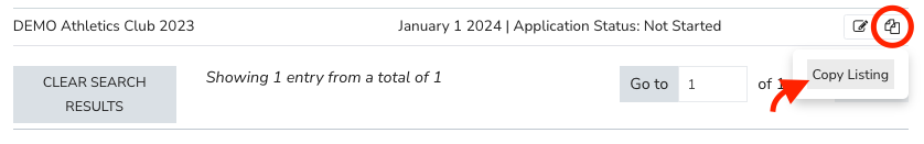 Was your club affiliated in 2023? Retrieve your club listing information effortlessly by utilizing the 'Copy an existing application' button.