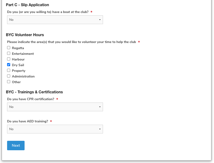 * Part C - Slip application complete with insurance details (for existing members with a slip also need to complete this). Note that you can manually fill in your insurance information to upload a copy of the details which needs to be in .jpeg or .png format only
