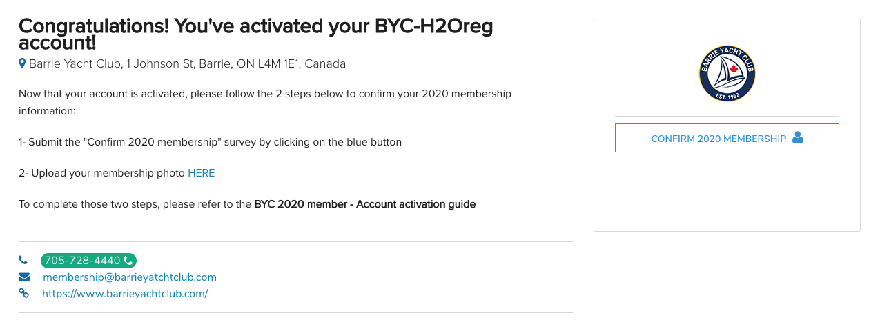 As BYC member you need to activate your H2O account and confirm/complete your 2020 membership. Please find below the step by step process to do so.