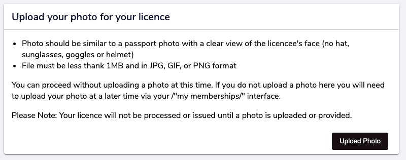 2- From the "Upload your photo for your license" section, select "upload photo"