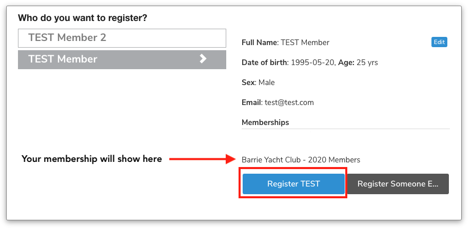 2- Select your name, and click on "register NAME"