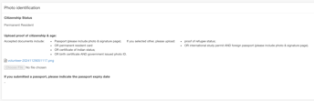 - The relevant tracker-requirement will display automatically based on the selected Citizenship Status value.