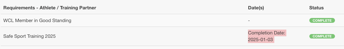 - If the completion date matches your membership requirements, the status will update to Complete automatically.