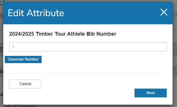 Open the person registration details for any of the Timber Tour events and scroll down to the ATTRIBUTES & RECORDS section where you will be able to delete the bib in order for it to be available again: