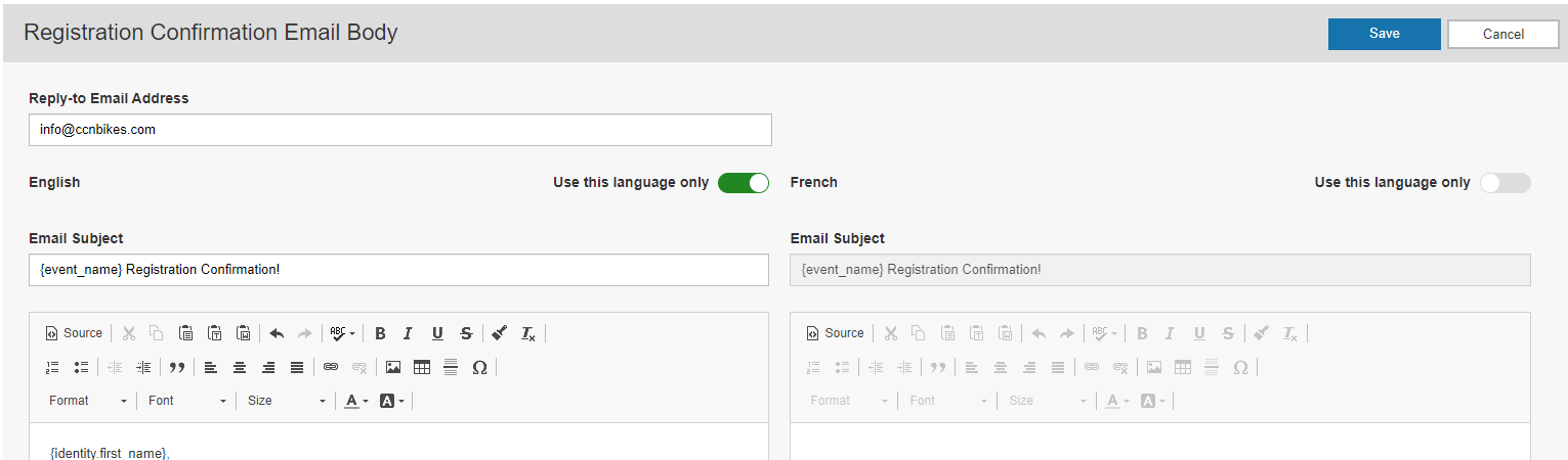 - Edit the Registration Confirmation Email to include your event update