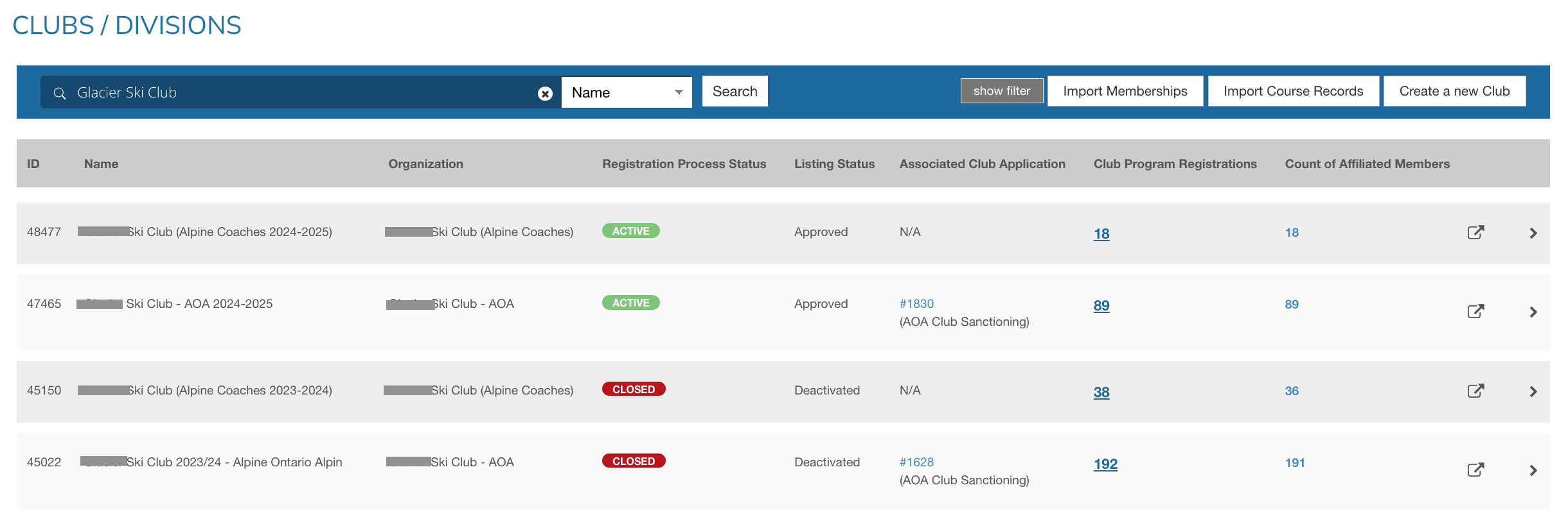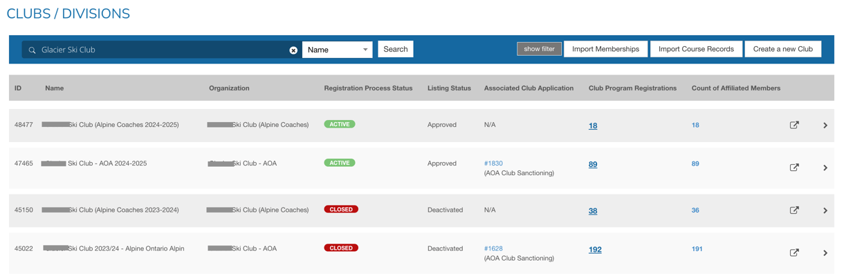 2- Open your 'AOA' (or 'Alpine Ontario Alpin') club dashboard for the current season