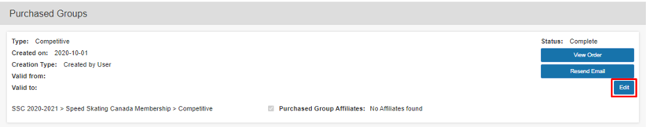 - Within the Membership Details page, scroll down to the Purchased Groups section.