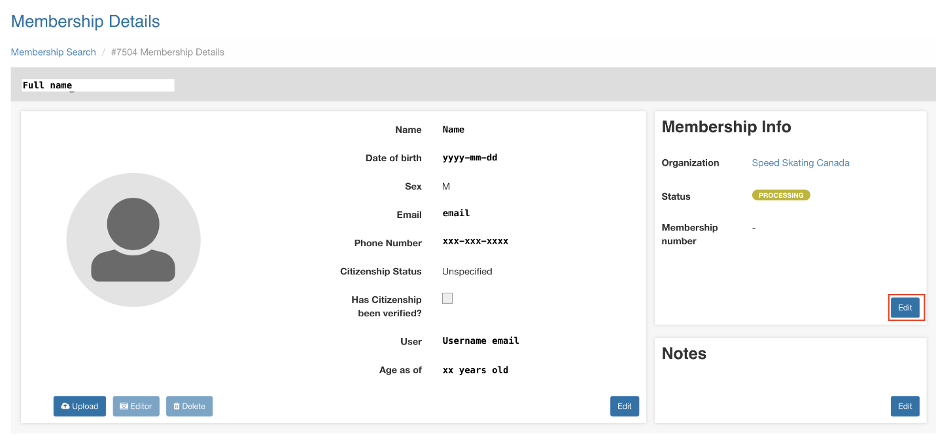 - Next, scroll to the top of the Membership Details page, go to the Membership Info Click Edit, and select Issued from the status dropdown menu. Then select Save.
