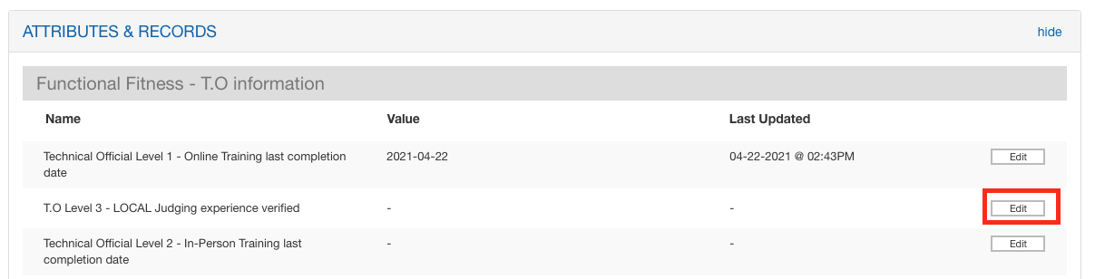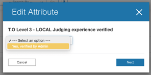 - Update the T.O Level 3 - Local Judging experience verified attribute to YES