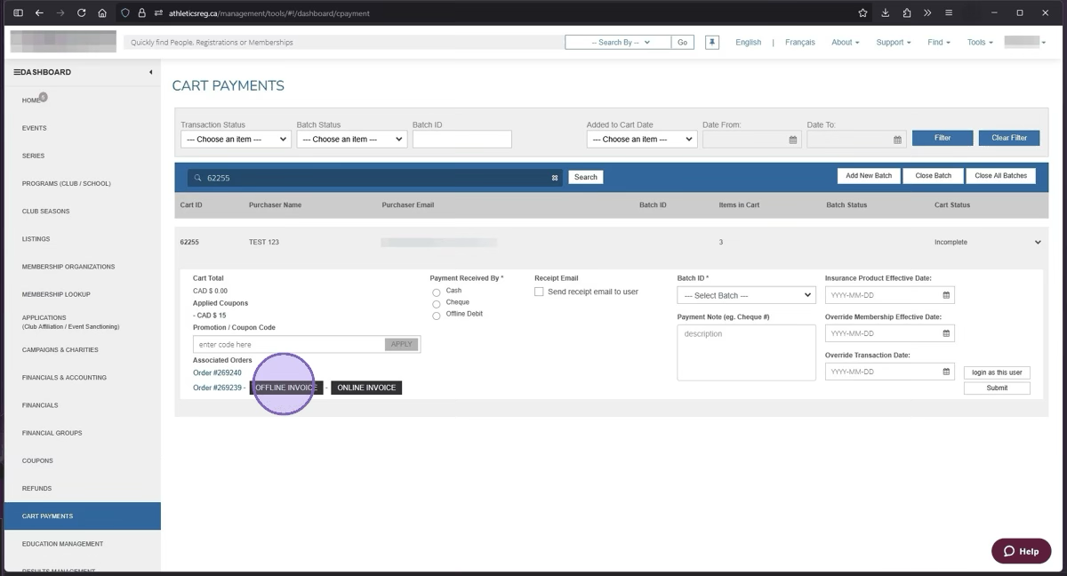 - Click OFFLINE INVOICE for payments made outside the Uplifter platform (e.g., cheque, bank transfer).