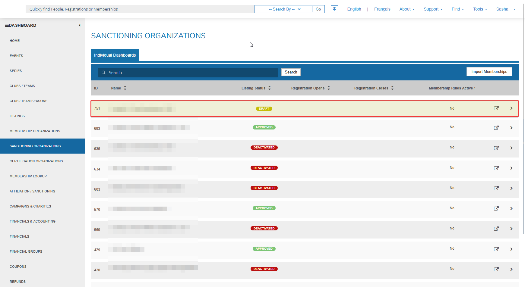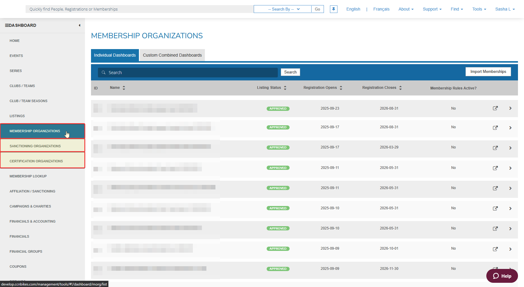 On the Dashboard, select the relevant category (Membership Organizations or Sanctioning Organizations or Certification Organizations).