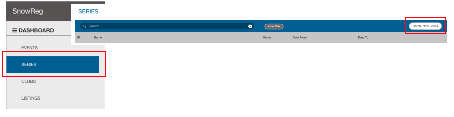 Once in your dashboard, select the “series” menu as below and then select “create new series”
