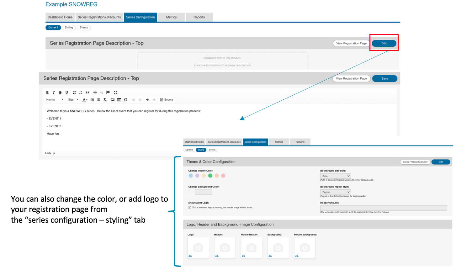 In “series configuration – content” you can add the description content that the people will see when they access the series registration page