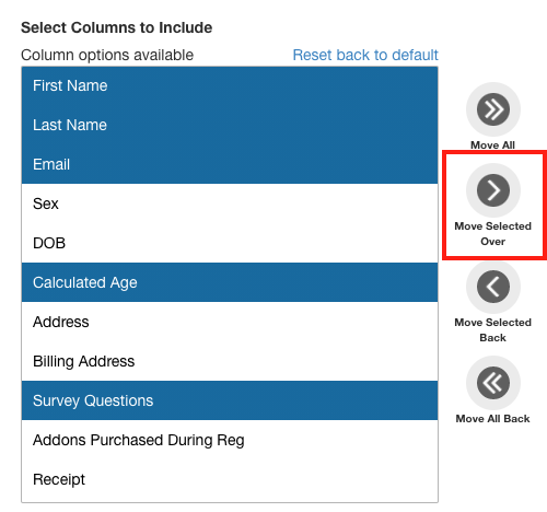 4- Select the info you want to show in your report - and select "move selected over"