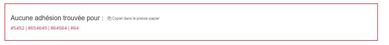- Vous pouvez maintenant ajouter des virgules entre chaque numéro pour chercher plusieurs membres à la fois (les espaces en trop sont enlevés pour améliorer les données mal formatées. ''123, 543 742 , 65317'' recherchera les membres pour ''123'', ''543742'' et ''65317''