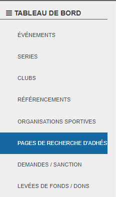 Pour gérer votre page de recherche d'adhésions, cliquer sur page de recherche d'adhésions
