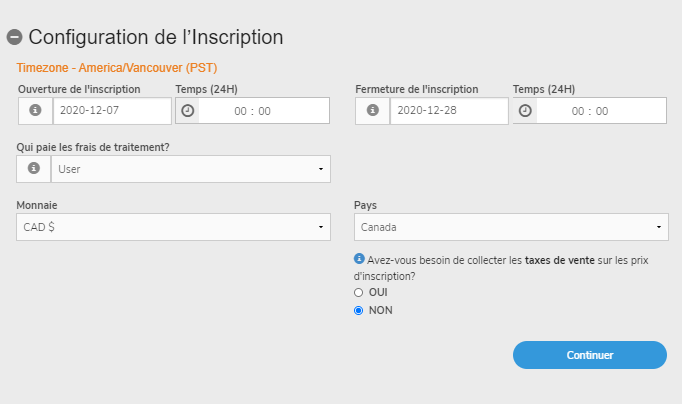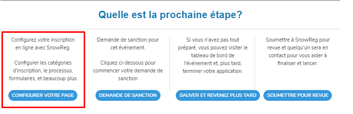 Terminer votre paramétrage, en utilisant notre GUIDE "Configuration du processus d'inscription : COMMENT CONFIGURER VOTRE ÉVÉNEMENT, PROGRAMME, COMPÉTITION, ACTIVITÉ"
