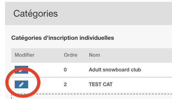 1 Modifiez une catégorie en sélectionnant modifier comme indiqué en rouge ci-dessous :