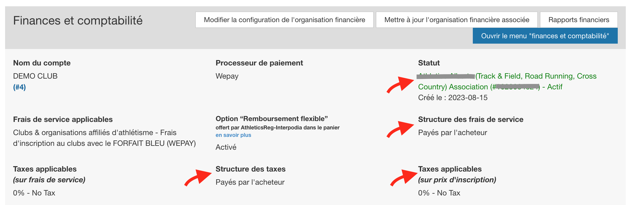 Tous les clubs devront signer un accord de configuration (résumé de la configuration et des frais applicables associés). Cet accord assure la conformité des options de configuration, et que le club a confirmé les frais applicables sur ses inscriptions.