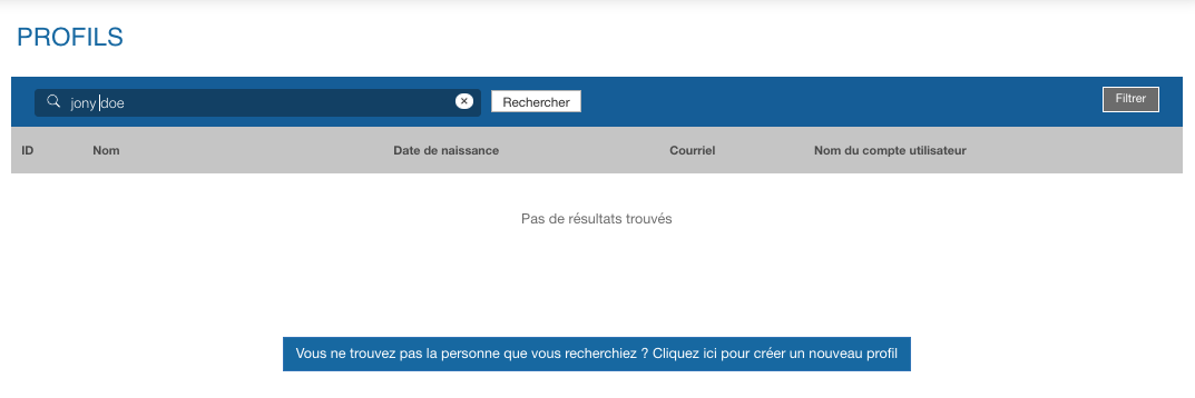 - Si la personne N'EXISTE PAS, cliquez sur le bouton "Vous ne trouvez pas la personne que vous recherchez ?..." et créez le compte/profil.