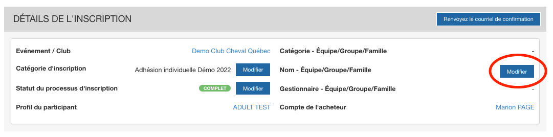 Ajouter manuellement un membre à une équipe/inscription de groupe :