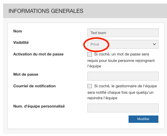 Si vous ne voyez pas l'équipe / le groupe dans la liste, assurez-vous que le statut de l'équipe est public :