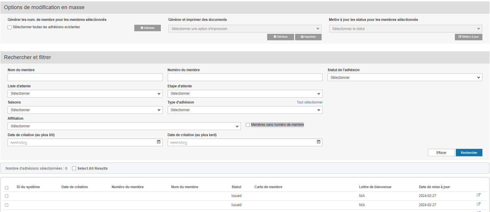 2. Sur cette page, vous constaterez que l'option de "Modification en masse" est actuellement grisée. Vous devez choisir pour quel membre vous souhaitez générer les documents.