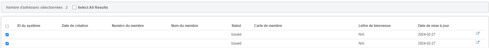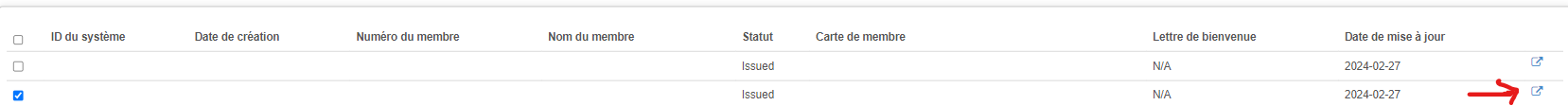 5. Dans la liste filtrée en bas, vous pouvez accéder aux détails de leur adhésion en cliquant sur le bloc-notes du côté droit.