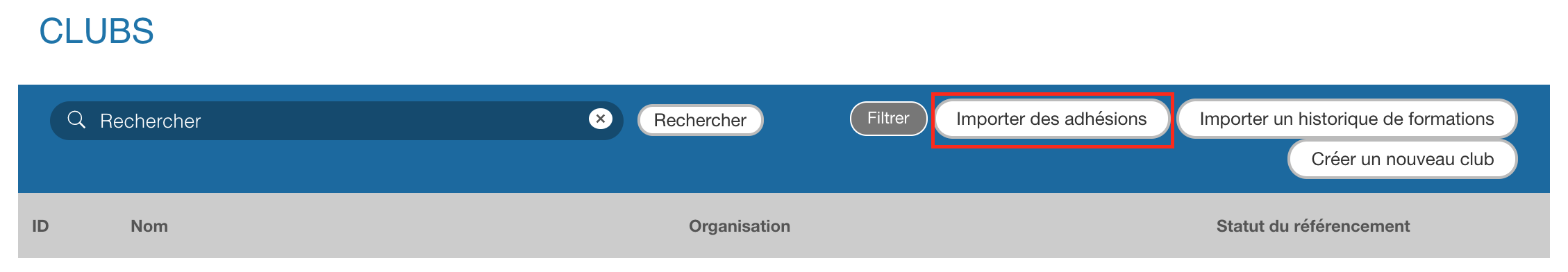 1- Cliquez sur le bouton "Importer des adhésions"