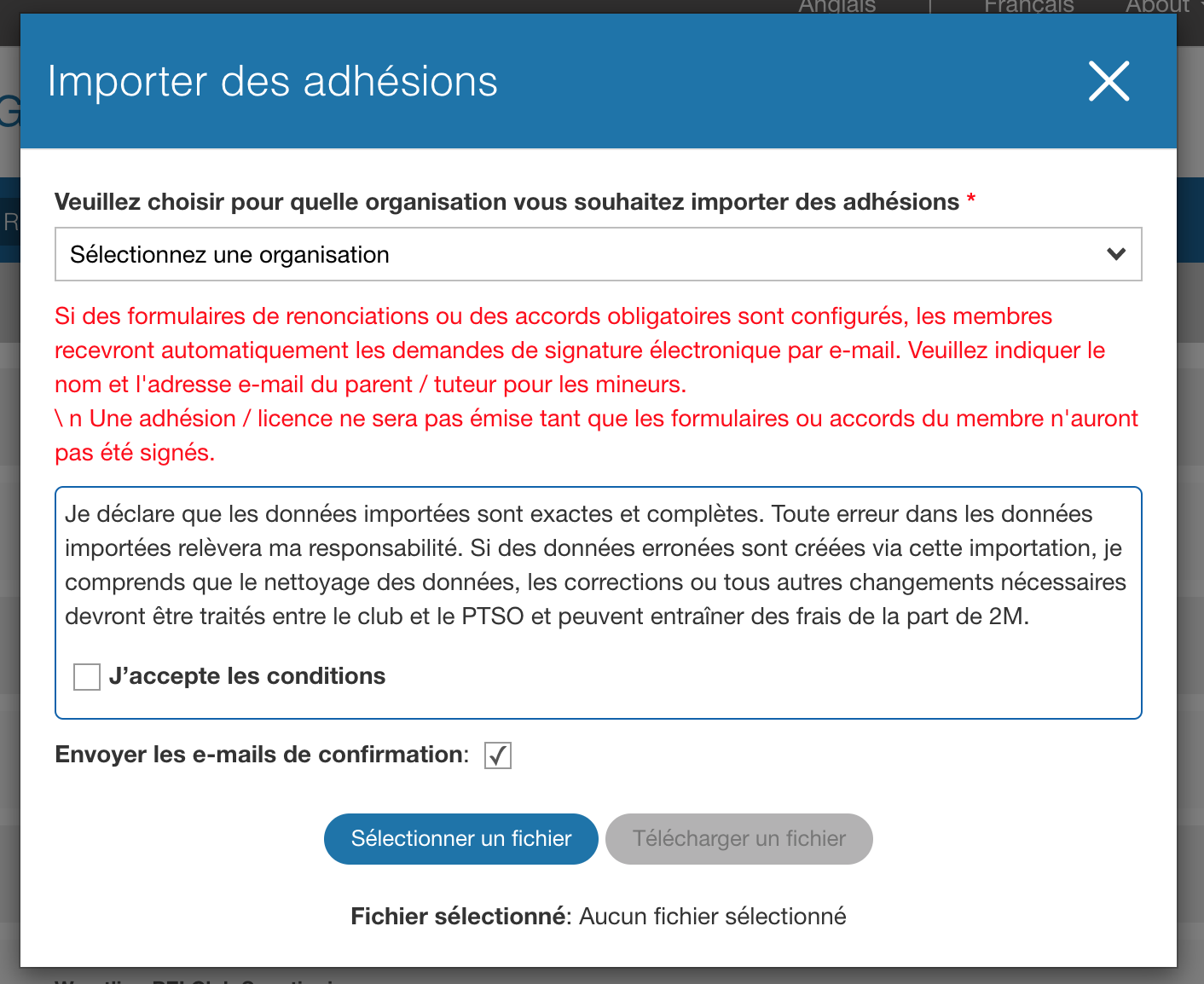 2- La fenêtre pop up "Importer des adhésions" apparaîtra