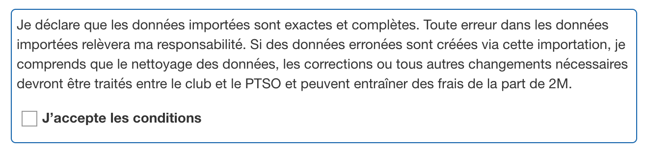 9- L'importation va démarrer, et une fois terminée, vous recevrez un e-mail avec le résultat. De plus, vos membres importés recevront une notification pour signer leurs accords (si applicable).