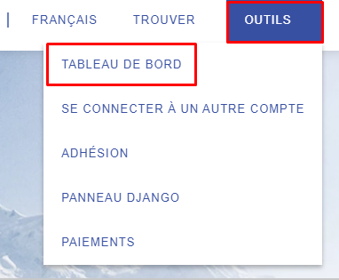 - Puis sous outils sélectionnez Tableau de bord