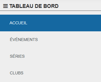 Le menu principal d'un tableau de bord de club est situé sur le côté gauche de l'écran.