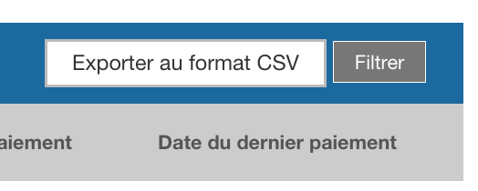 Une fois que vous avez filtré votre liste d'abonnements en fonction de vos besoins, vous pouvez télécharger la liste des détails de l'abonnement à l'aide du bouton « exporter au format CSV » :