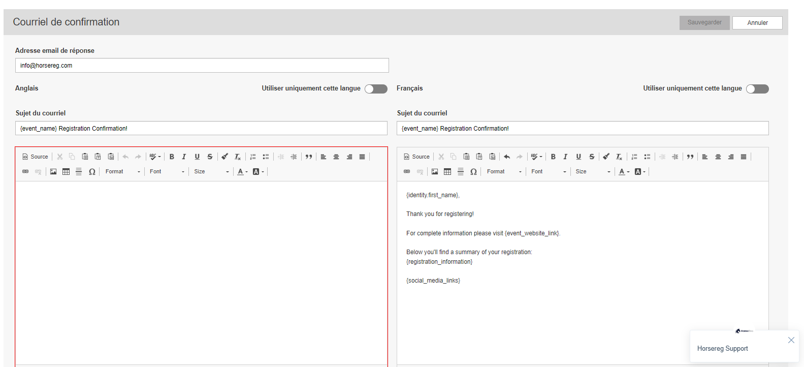 - Modifiez l'e-mail de confirmation d'inscription pour inclure la mise à jour de votre événement