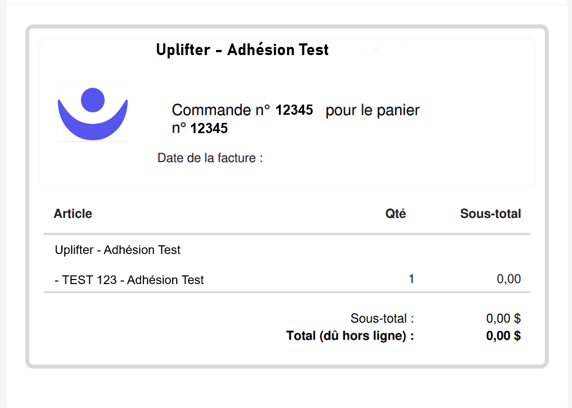 - Cliquez sur FACTURE pour les paiements effectués directement sur la plateforme Uplifter (par carte de crédit).