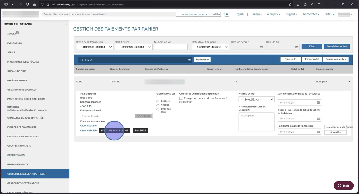 Connectez-vous à votre compte Uplifter, puis ouvrez le menu GESTION DES PAIEMENTS PAR PANIER.